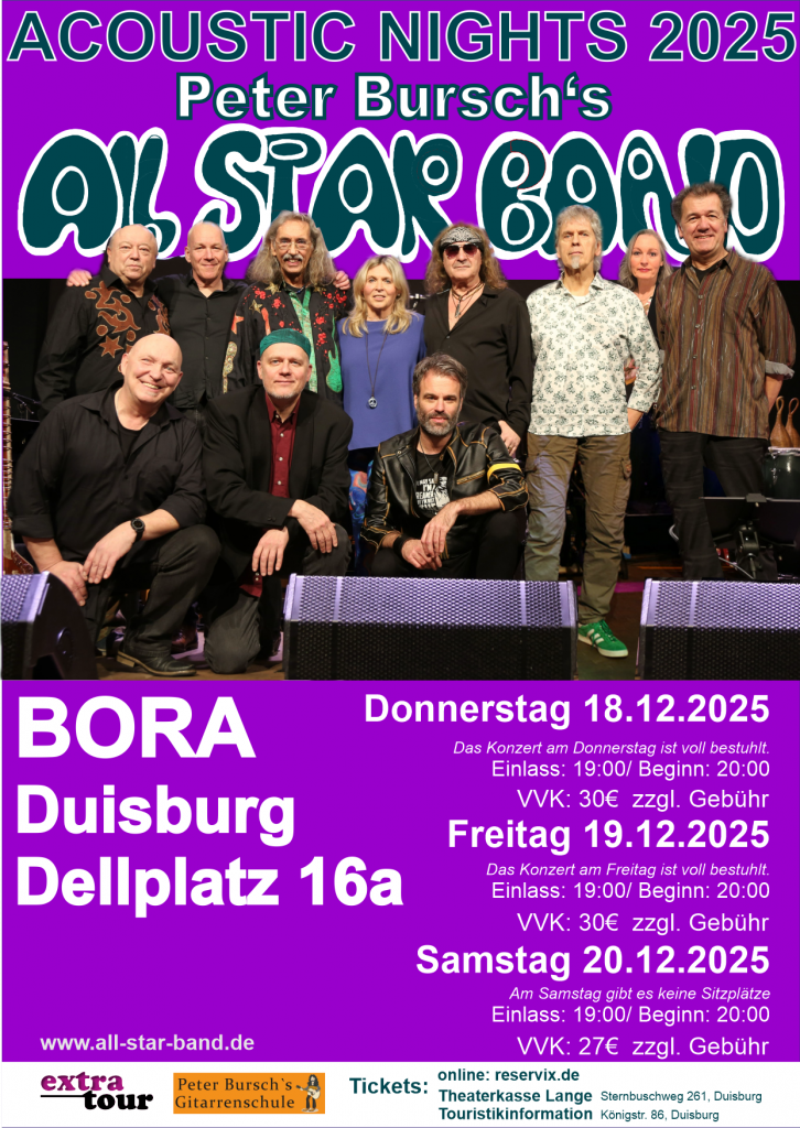 Angekündigt hat sich übrigens auch der „Gitarrenlehrer der Nation“. Und zwar mit einem Jubiläum: Peter Bursch hatte sein „Gitarrenbuch“ vor mittlerweile einem halben Jahrhundert veröffentlicht. Ob er live zur Gitarre greift? Lassen wir uns überraschen!